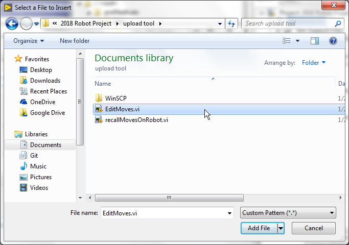 This will open a file dialogue. Use it to select the EditMoves.vi that you just extracted.